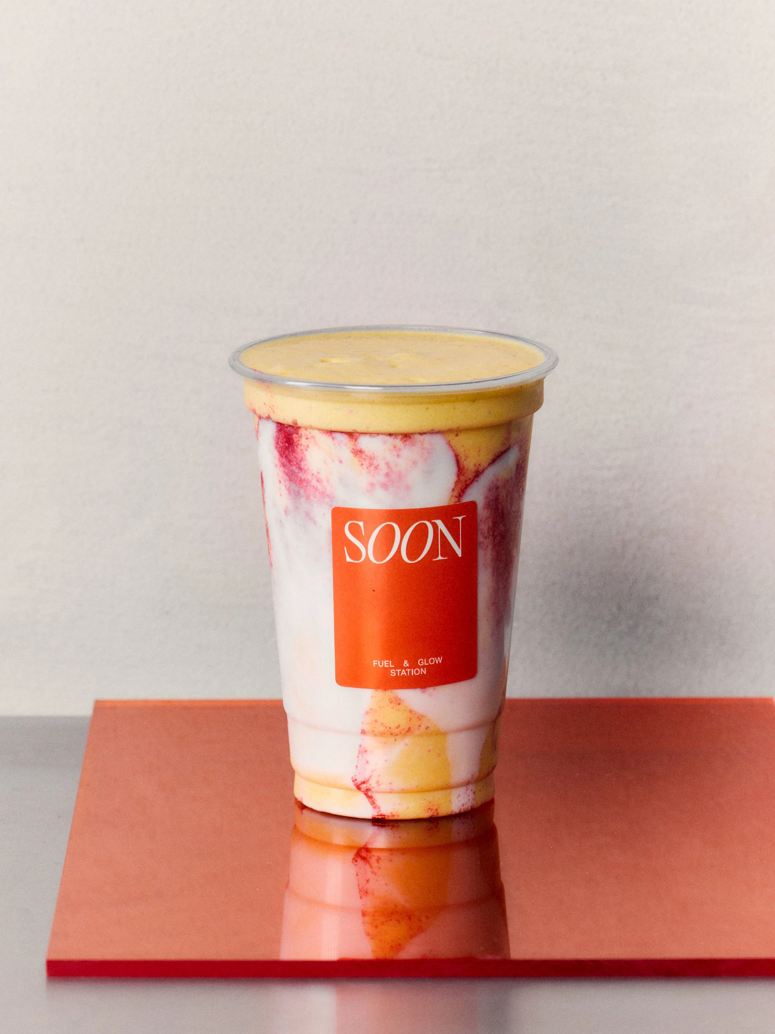 Coconut cream, mango, almonds, coconut water, ginger, black pepper, verbena, turmeric.