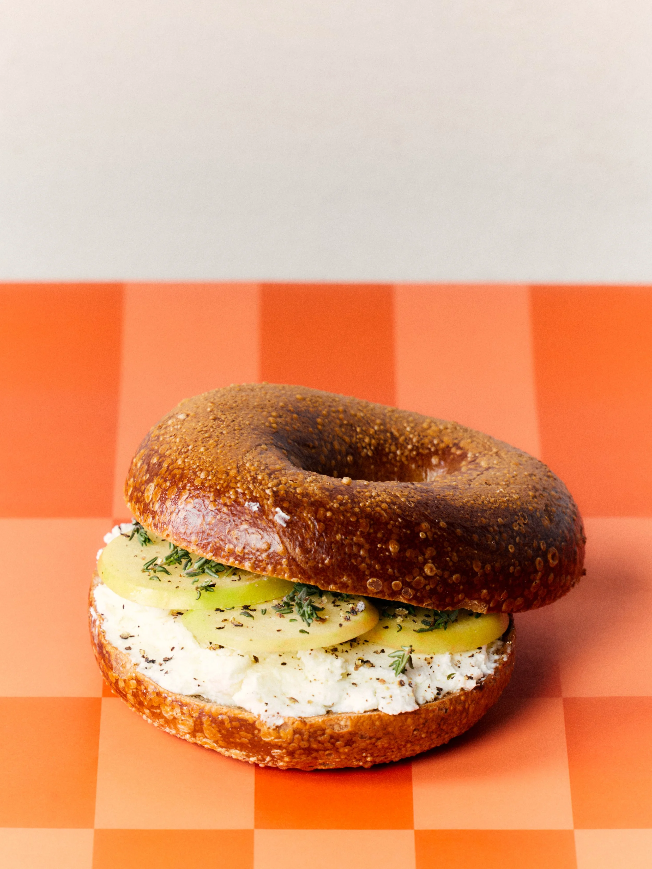 Malt bagel, goat cheese, honey, apple, thyme.